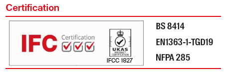 ✓ FCFcl Plus closed state cavity barrier is tested and classified to EN standards and bears ETA and CE marking